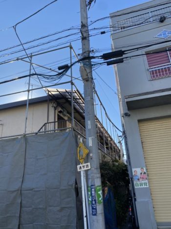 今日は葛飾区東堀切にてアパート2階建ての解体足場を施工させて頂きました。