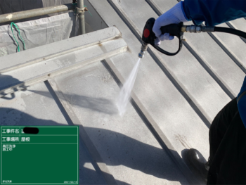 下部の写真は屋根の洗浄から塗りまで全て施工前から下塗り上塗りだったりと写真を残しお客様に見て確認してもらうことで、安心してもらえると思って大建架設では必ず写真に残しています。